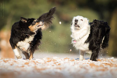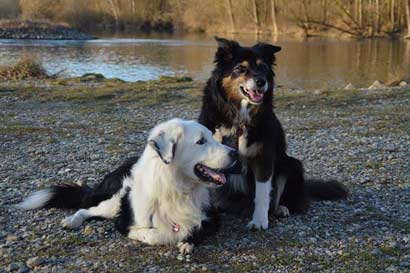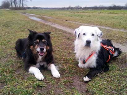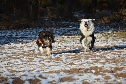 Ja meine Freundin Bonnie ist ein tolles Mädchen. Auf sie muss ich aufpassen, und wenn keiner guckt, dann kuscheln wir auch mal zusammen auf dem Hundebett! Spielen will sie mit mir leider nicht, aber sie ist ja auch schon eine ältere Dame. Aber wir halten meistens zusammen wie Pech und Schwefel, auch wenn wir mal unterschiedlicher Meinung sind. Vor allem beim Betteln sind wir ein eingeschweißtes Team ;-) Aber ich habe ja nicht nur meine Freundin Bonnie. Wir treffen beim Gassi gehen immer wieder andere Hunde und laufen auch öfters in großen Hunderudeln. Das ist vielleicht toll! Ganz viele Jungs und Mädels, mit denen man laufen kann. In einem großen Hunderudel bin ich auch super verträglich, nur hier bei uns ums Eck gibt es ein paar Rüden, die mich nicht leiden können. Da muss ich manchmal auch mal was sagen. Aber generell bin ich lieber ruhig, wenn mich jemand anzickt. Ich erschrecke da immer so schnell.