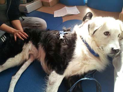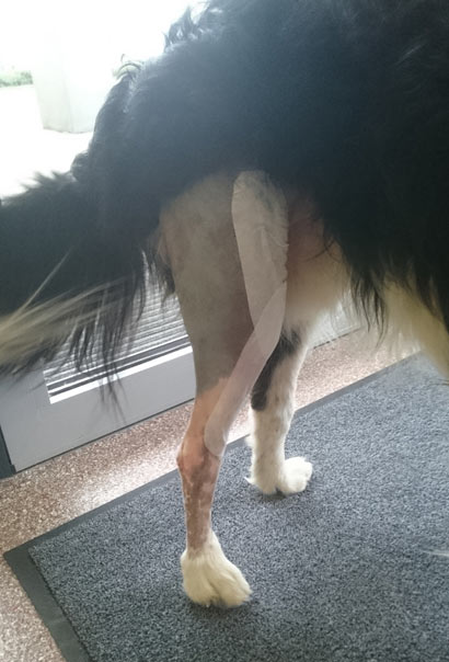 Zudem wurde er mit Laser und Eis behandelt. Beim zweiten Termin ging es vor allem darum, die schmerzhaften Blockaden in Wirbelsäule und Becken zu lösen, die durch die Schonhaltung seines Beines entstanden sind. Beim dritten Termin ging es wieder darum, das Bein durchzubewegen, das Narbengewebe zu lösen und die Beweglichkeit festzustellen.