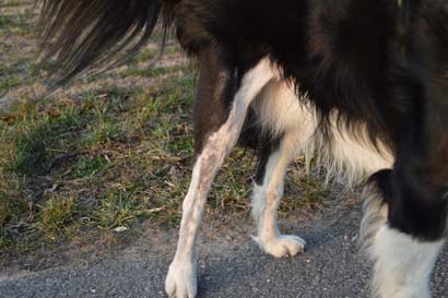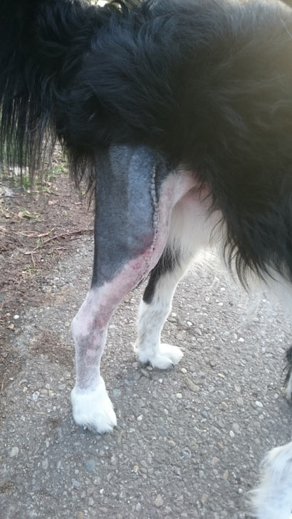 Max hatte ein paar Tage mit Wassereinlagerungen zu kämpfen, da das Bein ja noch nicht belastbar war. Seit Montag ist das Pflaster nun ab und er belastet sein Bein nun auch. Und damit sind auch die Wassereinlagerungen verschwunden