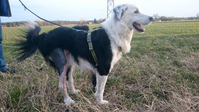 Die 5 Wochen sind inzwischen längst vorüber und mir geht es gut. Ich kann schon wieder eine ganze Stunde am Stück laufen. Ich bin zwar nicht der Schnellste, aber es gibt ja auch sooo viel zu Schnüffeln! Manchmal überkommt es mich und ich renne mal meiner Freundin Bonnie hinterher oder will mit ihr spielen, aber dann pfeift mich mein Pflegefrauchen zurück und vertröstet mich noch ein bisschen. Sie meint dann immer, ich soll noch langsam machen. Ich halte mich dann auch meistens dran ;-)