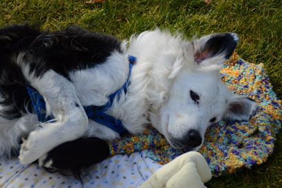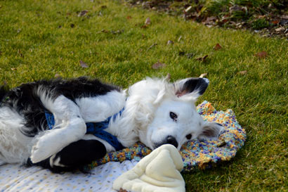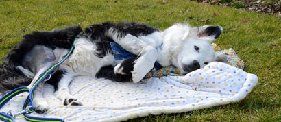 Mein Pflegefrauchen meint, ich bin aber ein kleiner Tollpatsch, nur weil ich manchmal durch die Gegend purzel, wenn ich es zu eilig habe. Aber langsam machen fällt mehr so schwer… Ich bin halt ein wenig hibbelig, bin ja auch keine Couchpotato sondern ein Hütehund!
