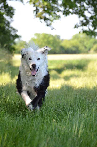 Sobald ich mich eingelaufen habe und hier und dort und überall erstmal geschnüffelt habe, kann ich auch mal bisschen schneller laufen. Aber das ständige Rennen überlass ich dann doch lieber meiner Freundin Bonnie. Ich laufe lieber langsam hinterher. So fit bin ich dann doch noch nicht. Mein rechtes Knie macht mir ja auch noch Probleme. Wer schonmal ne verrutschte Kniescheibe hatte, weiß sicher, was ich meine. Davon wird öfters leider auch mein Becken blockiert. Aber das wird ja nun auch bald in Angriff genommen, damit ich dann endlich ganz toll rennen kann.