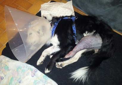 Der liebe Max hat seine erste Operation gut überstanden!!! Nach einer mehrstündigen sehr komplizierten Operation ist er nun stolzer Besitzer einer Kniescheibengelenksendprothese. Außerdem wurde eine Achsenkorrektur vorgenommen, so dass sein Bein jetzt wieder absolut gerade steht. Der tapfere Max wird nun rund um die Uhr sehr liebevoll von seiner Pflegefamilie umsorgt. Er benötigt nun -bevor die OP des zweiten Beines ansteht- noch mehrere Wochen strikte Erholung, darf sich möglichst wenig bewegen, nicht spielen, nicht hüpfen, nicht rennen.