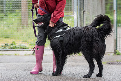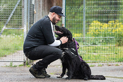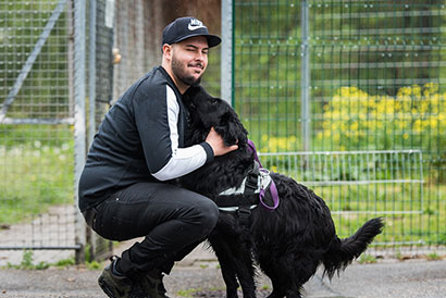 Mit dem eintönigen Tierheimalltag kommt er nicht zurecht, er ist unterfordert und sichtlich verzweifelt. Einziger Lichtblick sind für ihn die kleinen, viel zu seltenen Spaziergänge. Er wartet trotzdem geduldig um das Geschirr anzuziehen. Holt man ihn aus seinem Zwinger, ist er verständlicherweise kaum zu bremsen. Dies legt sich jedoch schnell und jeder kann sehen, wie sehr er die Abwechslung und die Nähe des Menschen geniesst. Streicheleinheiten liebt und geniesst er sehr, gerne legt er sich auf den Rücken und lässt sich den Bauch kraulen. Begegnungen mit Artgenossen verlaufen meistens entspannt. Für Katzen interessiert er sich nicht, wenn sie nicht weglaufen. Wir werden weitere Katzentests machen
