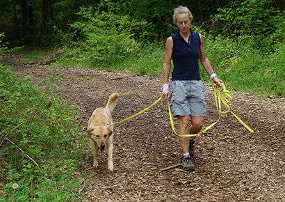 Auch während den seltenen Spaziergängen findet er keine Ruhe, er schnüffelt unentwegt am Boden und zieht an der Leine.