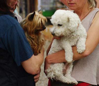 alt und die Yorkie Hündin Effy, 13 Jahre