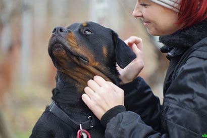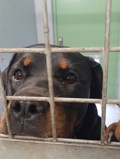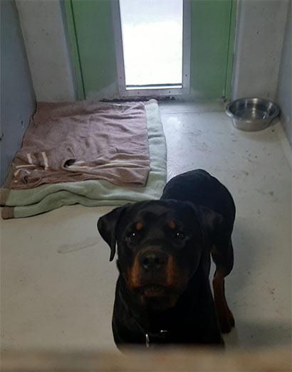 Die junge Rottweiler Hündin Maysa ist in einer Familie aufgewachsen und lebte in einer Wohnung zusammen mit Kindern von 15, 7 und 5 Jahren.