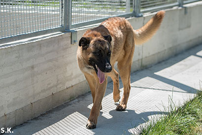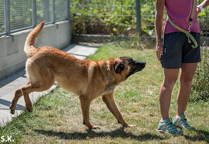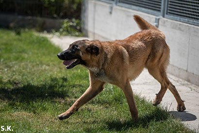 Laufen Besucher vorbei, springt er stürmisch ans Gitter, bellt und jault.