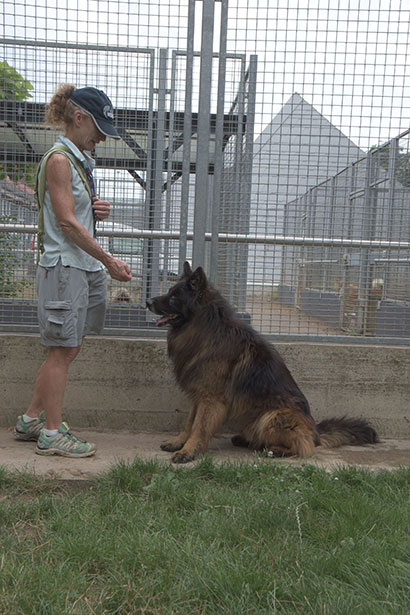 Im Freilauf ist es schwierig seine Aufmerksamkeit zu bekommen, er lässt sich total durch seine Zwingernachbarn ablenken und läuft immer hin und her.
