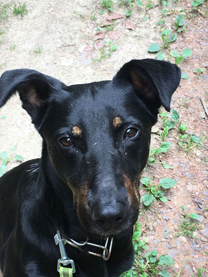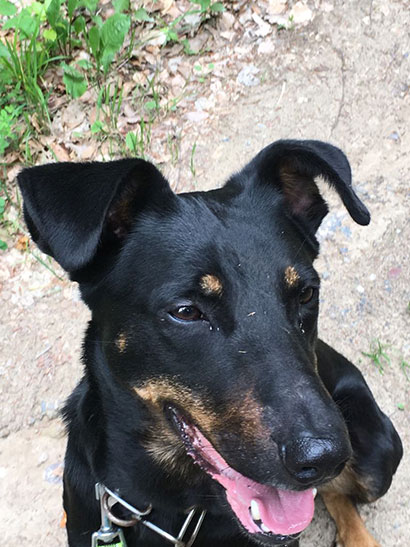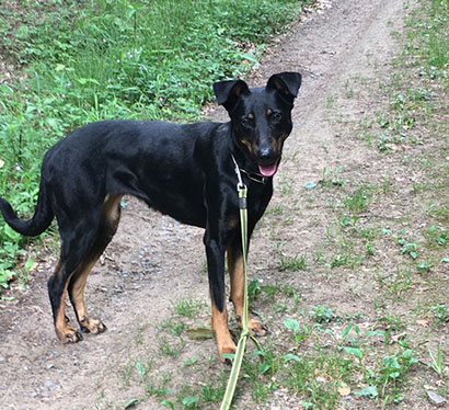 Mia hat keine Probleme mit Artgenossen und läuft sehr gut an der Leine.