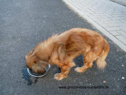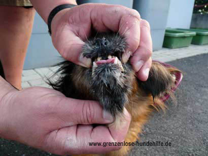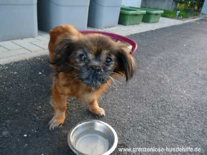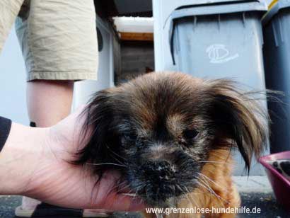 Völlig apathisch, ja fast schon leblos wurde die kleine Hündin vor einigen Tagen in der Aussetzbox des Tierheims gefunden. Abgemagert, mit verklebten Augen und kaum noch fähig sich auf den Pfoten zu halten, verschlang sie erstmal gierig Futter und Wasser.
