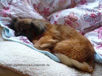 Ansonsten fühlt Sie sich sehr wohl und flitzt mittlerweile durch den Garten das man nur so staunen kann. Auch mit unserem kastrierten Rüden und unseren Katzen hat sie sich von Anfang an super verstanden. Sofa und kuscheln im Bett, das liebt Sie!