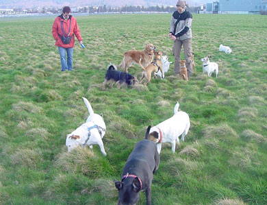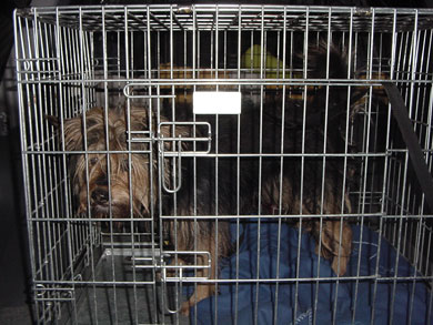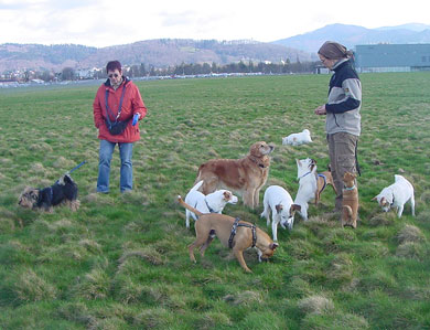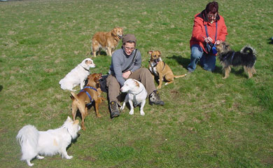 mit Hunden und sucht nun ein endgültiges Plätzchen. |