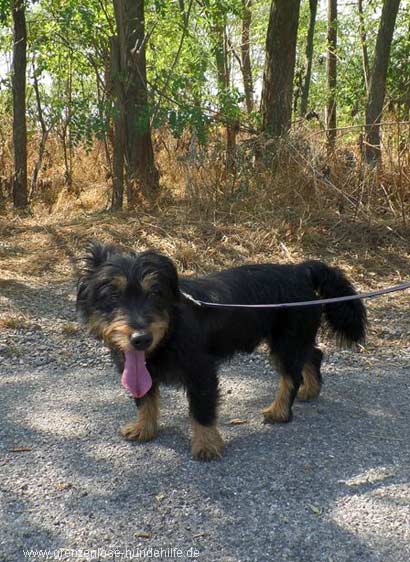 Der hübsche Rüde lebte mit Kindern und blieb anscheinend nicht gerne alleine so die Aussage der Besitzer bei der Abgabe.