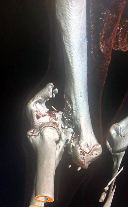 Dort sah man endlich die bittere Realität: Komplizierter Trümmerbruch des Ellenbogengelenks, es wurde zur Amputation geraten.