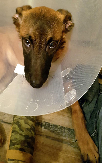 Der Malinoiswelpe Mo wurde humpelnd von einem "Züchter" gekauft, mit der Aussage "hat sich nur das Beinchen vertreten, das wird schon wieder".