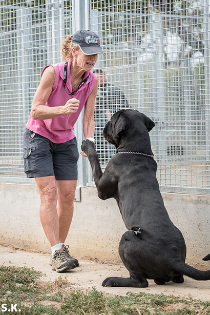 Spaziergänge in der Gruppe sind für Modjo kein Problem, er läuft gut mit und zeigt keinerlei Agressionen.
