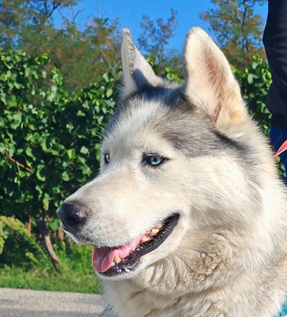 Der 8 jährige Siberian Husky Rüde Moki wurde freilaufend auf der Strasse gefunden.