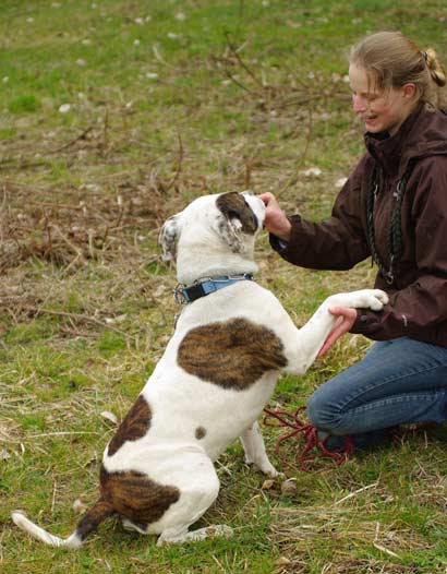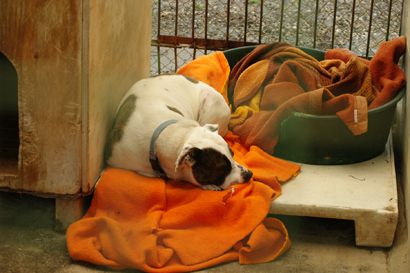 Ich merke wie er immer resignierter wird, er leidet sehr unter der Einsamkeit und Eintönigkeit seines Zwingerlebens. Nach unseren Spaziergängen legt er sich in seinen Korb und man hat den Eindruck er schaltet ab und ist nicht mehr da. Es bricht mir das Herz, einen sonst so lebensfrohen Clown von Hund so traurig und zunehmend aufgebend zu sehen :-((