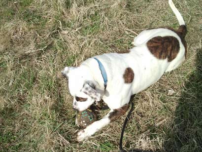 Die erstem paar Meter aus dem Tierheim merkt man das in seinem Kopf nur ein Gedanke ist „raus, raus, raus, raus“. Sobald er dann an der langen Schleppleine auf dem Feld ist, entspannt er sich und genießt es die vielen verschiedenen Gerüche zu erkunden und sich zu bewegen.
