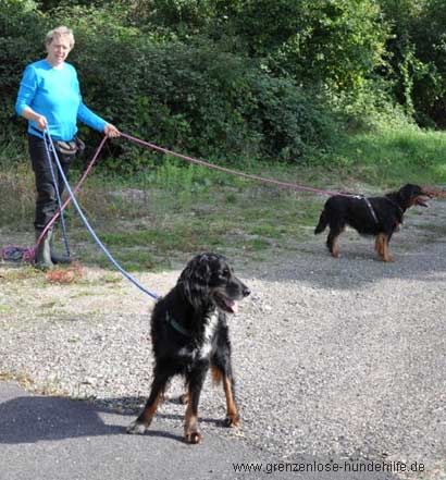 Momo und Nénette sind superlieb und es ist überhaupt kein Aufwand, mit den zweien Gassi zu gehen. Nénette ist etwas gemütlicher und orientiert sich sehr an dem etwas flotteren Momo.
