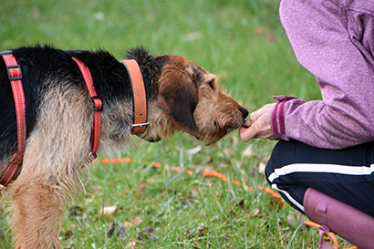 Ich nahm ein Leckerli in die Hand, streckte sie aus und wartete.