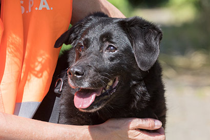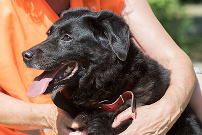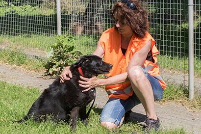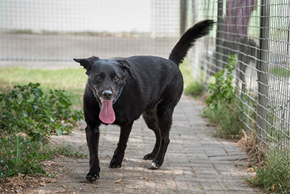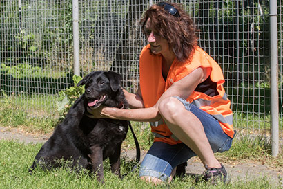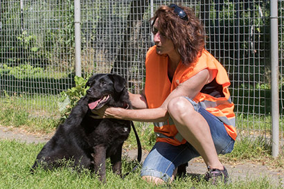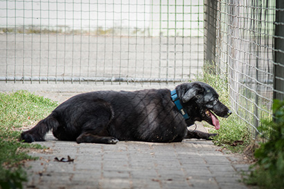 Die 10jährige Labrador Mixhündin ist leider sehr übergewichtig. Dennoch war sie ausser sich vor Freude, als ich sie aus dem Zwinger holte.