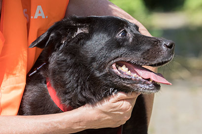 Oma Nero ist eine liebe, sehr menschenbezogene Hundedame, die wegen Problemen mit dem Vermieter abgegeben wurde.