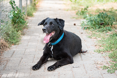 Sie läuft sehr entspannt an der Leine und begrüsst Artgenossen freundlich. Wir machten im Schatten eine kleine Pause und Nero ließ sich gerne beknuddeln.