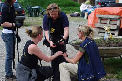 Neros umringt von Gassigängerinnen