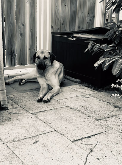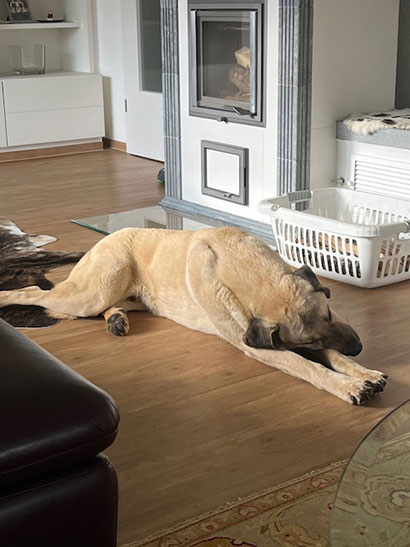 Ein wahrer Kampfschmuser ist er, der seine täglichen Streicheleinheiten, besonders abends, sehr genießt. Morgens weckt er uns gerne mit seiner kalten Schnauze, bereit für einen neuen Tag voller Abenteuer.