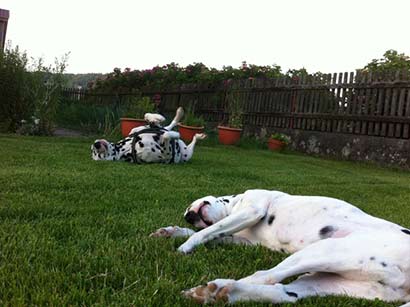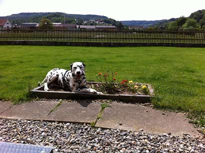 4 Naja, was soll ich dazu sagen... Frauchen ist nicht sooo begeistert, dass ich ihr Blumenbeet als Liegeplatz ausgesucht habe...