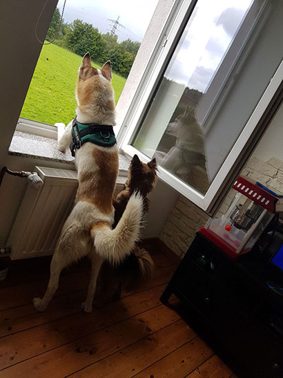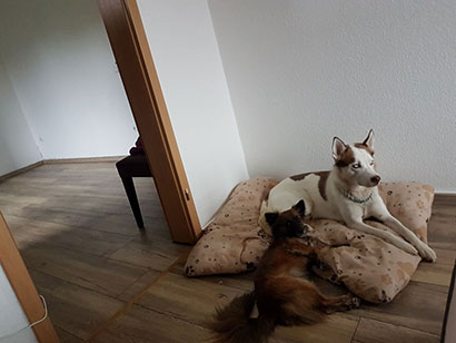 Mythos und Foxy geht es bestens und sie verstehen sich weiterhin super. Mittlerweile haben wir auch sein Vertrauen gewonnen und er hat sich super gemacht