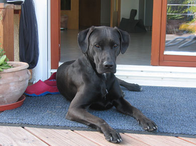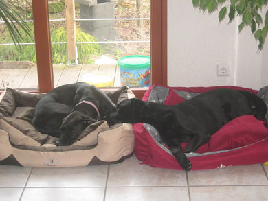 Hause kommen schlummert sie tief und fest in Ihrem Körbchen.