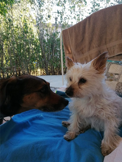 Bei unserem Besuch mit unseren Hunden hast du uns jedoch gleich gezeigt, was für ein agiler, sturer Opi du bist ;-/ Erst mal warst du sehr dominant gegenüber unserem alten Rüden - zum Glück habt ihr das noch vorm Tierheim geklärt, dass keiner von euch beiden das Sagen hat - Chef ist die Jugend - Emmi! Es war nicht die berühmte Liebe auf den ersten Blick - du bist eine Persönlichkeit und wolltest deine liebe Pflegerin eigentlich nicht so wirklich gegen uns tauschen - das hast du beim Abschied auch lautstark kundgetan. Das Protestgebelle hast du beibehalten - du protestiert, wenn die Futterzubereitung deiner Meinung nach zu lange dauert - also immer ;-)