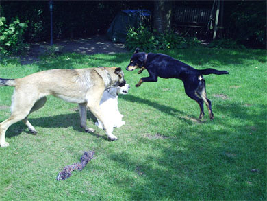 ist fleißig mit Frauchens auf dem Hundeplatz, spielt mit