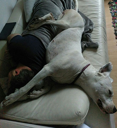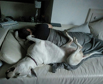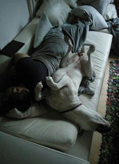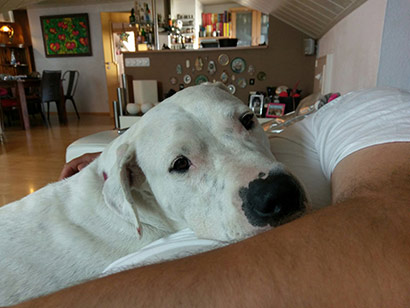 Ihr Herrchen darf sich nicht alleine ausruhen. Ibria muß da mit auf die Couch :)))