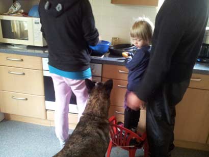 Bahia kann super gut mit Kindern.......so einen freundlichen Hund hatten wir selten. Unsere Enkelin war gestern mit ihrer Mama für 3 Stunden hier, und das war absolut problemlos.