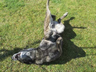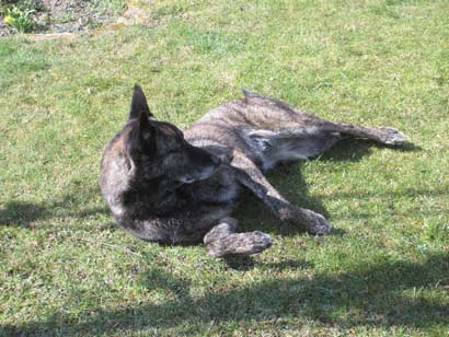 Sie hat durchaus noch Pfeffer im Hintern, besonders wenn sie Katzen sieht :) Gehen an der Leine muss sie noch üben. Sie zieht wie ein Kutschgaul und ist da ein bischen stur, was Korrektur angeht ;) Aber das ist verständlich nach der langen Zeit im Tierheim.
