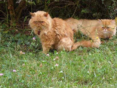 Barnie darf jetzt auch schon mit seinem Katzenkumpel Bubi in den Garten gehen……