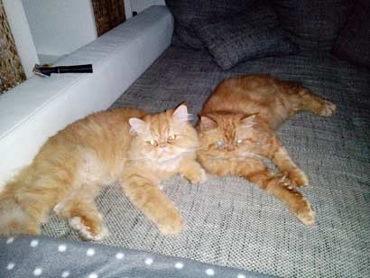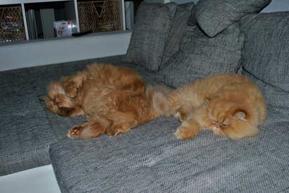 Barnie und sein neuer Kumpel Bubi sind ein richtiges „Dreamteam“. Wenn die Zwei mal nicht auf Bäume klettern, liegen sie eben faul auf dem Sofa…..:-)
