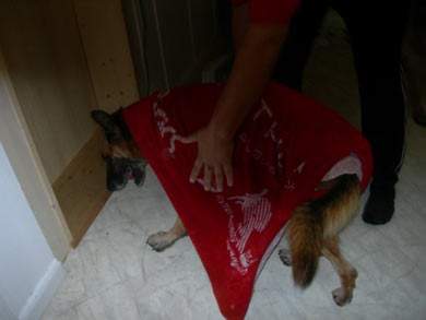 aufregenden Tag hat sichs Barry in der Küche am Boden gemütlich