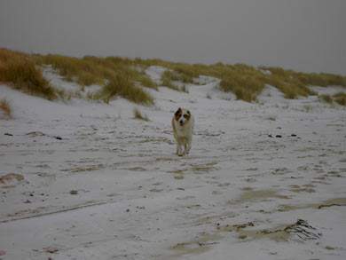 und stürmischen Hund verwandelt. Er läuft auf Schritt