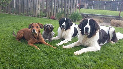 3 (!!!) ja echt...DREI andere Hunde leben hier mit mir und ich mit ihnen. Ein wildes junges Mädchen und ein ganz kleiner Mann und ein ganz grosser. Mir sind fast die Augen aus dem Kopf gefallen!