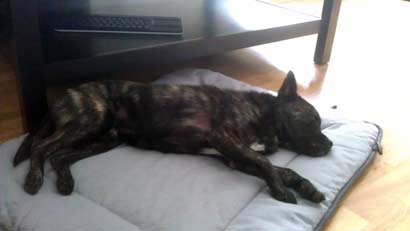 Am 25.7. haben wir den jungen Mann abgeholt. Auf der 1,5 stündigen hat er nur anfangs ein bisschen geweint, war ansonsten ganz ruhig. Zuhause angekommen durfte er sich in Ruhe einen Teil der Wohnung anschauen, anschließend gab es einen kleinen Snack. Kaum eine Stunde im neuen Heim, da wurden die Augen schon klein und er musste erstmal ein Nickerchen halten um die ganzen Eindrücke zu verarbeiten. Insgesamt war er hier total schnell daheim. Alleinbleiben ist kein Problem für ihn, sofern es davor und danach Beschäftigung gibt. Bei den Pferden verlief sein erster Besuch auch sehr gut. Wenn alles gut läuft, dann wird er nämlich Reitbegleithund. Billy ist mit seinen 11 Monaten nicht einfach müde zu bekommen, deswegen wird viel gespielt, aber auch schon mit dem Ernst des Lebens begonnen - Sitz klappt schon ziemlich zuverlässig, Platz je nach Laune. Fahrrad fahren haben wir auch schon ausprobiert, er läuft nebenher wie eine Eins! Wir sind rundum zufrieden mit dem kleinen Halunken und er glaube ich auch mit uns ;)