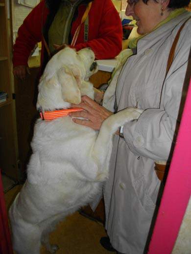 Wir haben Blanche mit ihrem Frauchen im SPA getroffen. Eine sehr liebe, hübsche und aufmerksame Hündin.