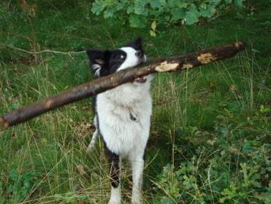 Ein wenig komisch ist er mit Stöckern im Wald. Ich unterbinde