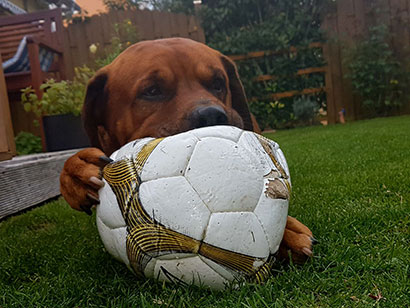 Er läuft ordentlich an der Leine, im Freilauf ist er mittlerweile gut abrufbar, überhaupt liebt er es spazieren zu gehen.