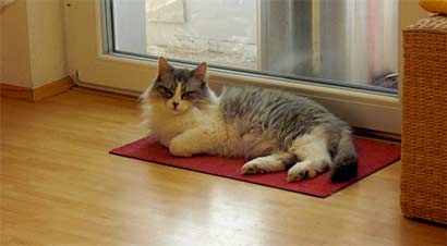 Schüchtern bin ich nicht! Wenn ich nicht gerade auf meinem Dosenöffner liege, leg ich mich daneben und putze mich.