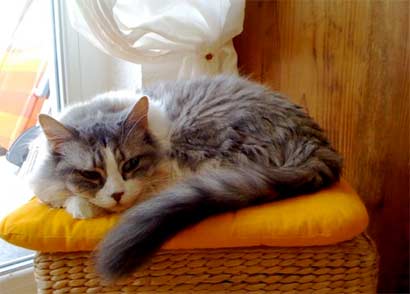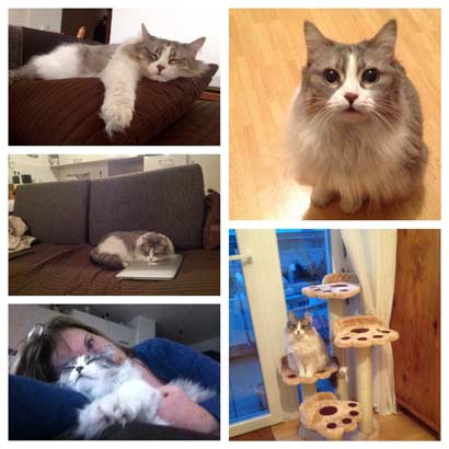 Weil sie nicht klettern will wurden die Leitern in den Keller verbannt und ein Katzenbaum für faule Katzen angeschafft, den sie eifrig nutzt (siehe Foto).